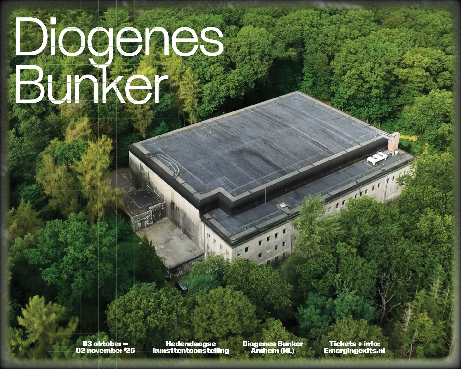 Al eerder dit jaar waren er meer dan 3000 mensen die zich hadden ingeschreven voor 3 excursies naar de Diogenes Bunker in Arnhem, waar slechts 60 plekken voor beschikbaar waren. In de maand oktober is de allerlaatste kans de bunker te bekijken, voor ze definitief haar deuren sluit. De bunker is van vrijdag t/m zondag van 3 okt t/m 2 nov 2025 het toneel voor Emerging Exits. Dit is een immersieve tentoonstelling waarin kunstenaars de veranderende relatie tussen mens, technologie en ecologie onderzoeken. Er is een beperkt aantal tickets beschikbaar per dag, dus wees er snel bij. Meer informatie.